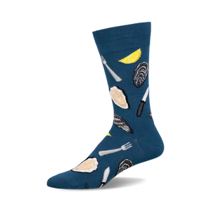 Not a fan of oysters? No worries! Slip on these socks and enjoy a touch of elegance without ever taking a bite. These playful blue socks are covered with oysters, lemon wedges, forks, and knives, giving you all the fancy vibes with none of the seafood.