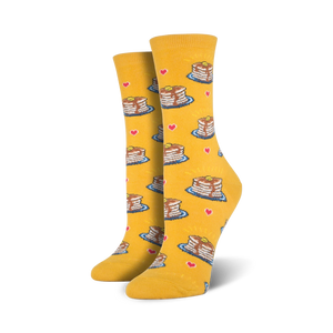 Team Pancakes or Team Waffles? Team Pancakes! If you love pancakes, these mouth-watering women's novelty crew socks are perfect for you. Each cool pair features stacks of pancakes topped with butter and syrup printed all over against a yellow background. Get them while they're hot!