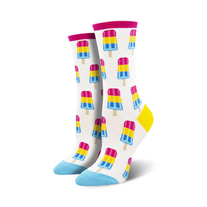 Pansexual Pops, the popsicle socks that are cool and refreshing. A delicious array of juicy popsicles in tantalizing flavors dance across these socks in every direction. They're like a popsicle party for your feet. Perfect for pride month and summer potlucks. And in case you were wondering, the popsicles do not come with an extra charge ;)