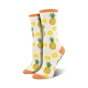 Partial To Pineapples Socks: Step into these socks and savor the sweet, juicy vibes with a fun pineapple all-over print. Brighten your day and anyone's who catches a glimpse. Yellow, green and orange dance together beautifully in this fruity-licious sock symphony for your feet. Put 'em on and let the pineapple power boost your day.