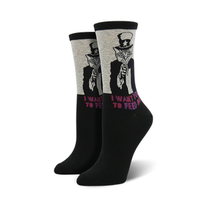 Cat in a hat! Just as inspiring as Uncle Sam, but without all the yelling, pointing and war! This funny pair of socks really captures the pain your face feels when your kitty wakes you up at 5AM, slapping you around with its sharp claws and screaming for some dried fish biscuits. Talk about cattitude!