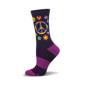 Peace and tranquility have never looked so stylish. Our Merino wool socks embrace the spirit of serenity with a charming design featuring peace signs and flowers. Perfect for nature enthusiasts and comfort seekers alike, these socks bring a touch of whimsy to any adventure. Let every step feel like a gentle breeze through the trees, with breathable mesh panels and dynamic arch support ensuring your feet are as happy as you are.