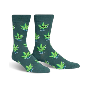 While we don't advocate getting high, we suggest you elevate your sock game. Our Peace Out Crew Socks are not only stylish and super soft, they're a surefire way to get a contact high from strangers. Our designer created a hilarious pattern of cartoon marijuana leaves rocking shades and tossing peace signs. Pairs great with your favorite tracksuit. Just don't forget where you put your lighter.