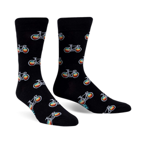 Pedal Power socks are the perfect way to show off your love of cycling. These crew-length socks are black with a pattern of multi-colored bicycles, and they're sure to turn heads wherever you go. When your friends ask where you got them, you can proudly say, "I got them at the Tour de France!" Just kidding, but you might feel like you're in the Tour de France when you wear these socks. Who knows, maybe they'll give you the power to climb the Alps like a pro.