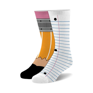 Have a smashing school year with these Pencil & Paper Kid's socks. One sock looks like a notebook and the other looks like a pencil. They're the perfect way to add a little fun to your child's school wardrobe. These unisex socks are available in sizes 7-10 and will fit both boys and girls. Made from a blend of polyester and nylon, these soft and comfortable socks are sure to become a favorite.