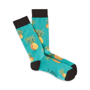 Are you a fan of all things pineapples? Then these funny mens novelty crew socks were made for you! Each zany pair features this popular and delicious tropical fruit printed all over against a relaxing teal background. Gift these refreshing socks to the pineapple lover in your life!