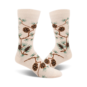 You'd Be Pining for These! - Sure, they're just socks, but with these Pinecone Crew Socks, you get more than just foot coverings, you get a whole winter wonderland right on your feet. Imagine the piney scent of a fresh forest, the crisp crunch of snow underfoot, the cozy warmth of a crackling fireside and all the joys of the season bundled into one comfy, breathable pair of socks. These fun crew socks feature an allover pattern of brown pine cones and green pine needles on a crisp white background that will make you want to snuggle up by the fire with a mug of hot cocoa or grab a pair of skis and hit the slopes, no matter the weather outside.