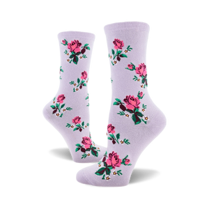 Brighten your day and your wardrobe with Pink Rose socks! Envelop your feet in a lovely blend of purple bursting with pink roses, sprinkled with white flowers, and touches of green leaves. Ideal for sprucing up your daily wear or jazzing up your outfit for that weekend garden party. Wondering how to turn heads at your next outing? Slip these bloom-inspired beauties on for a flawless floral statement!