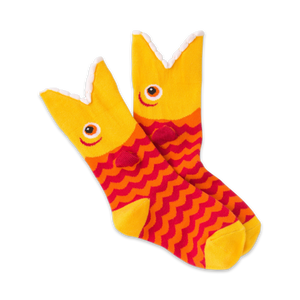 Piranha Wide Mouth Kids Crew Socks: Unleash the inner predator in your little one with these wild and wacky socks! Featuring a boldly colored cartoon piranha design, these socks are sure to make a splash wherever they go. Whether your kiddo is conquering the playground or making waves at the pool, these socks will keep their feet happy and their style on point.