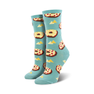 Pizza bagel lovers, rejoice! Live out your carb dreams with our Pizza Bagel socks. Step up your fashion game and make a dough-licious statement with these crew socks. They're a blast for any pizza enthusiast who wants to show off their love for cheesy, saucy goodness. Get ready to slice your way into the spotlight.