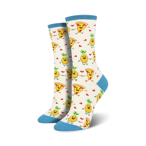 Which came first, the socks or the pizza? Pizza socks, of course, and they're SO cheesy! With their cartoon pizza slices and pineapple pals, these crew socks are just cheesy enough to satisfy your silly food fashion cravings. You'll be looking fly with these socks adorning your feet pineapple, on second thought, you might look a little 'hawaiian.'