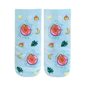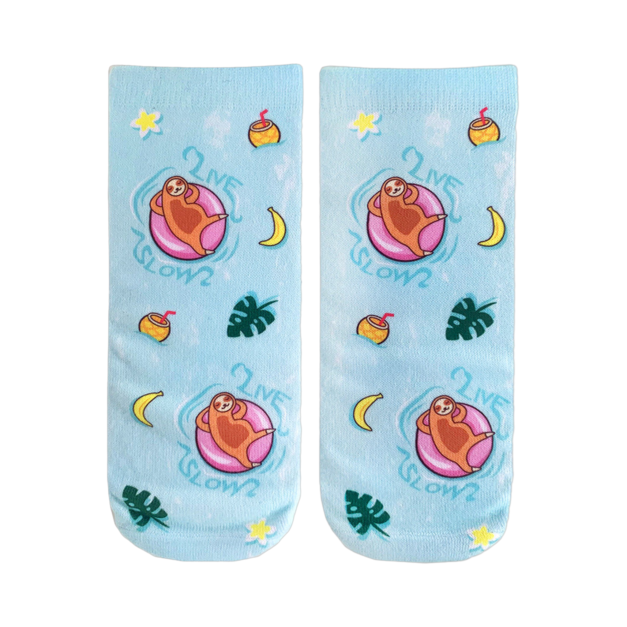 Pool Sloth socks are the epitome of relaxation and good vibes. Picture this: turquoise water, chill sloths floating on inner tubes, sunglasses, bananas, palm leaves, and coconut drinks. It's like a tropical vacation on your feet. Plus, these bad boys are made just for the ladies, so slip in and let the sloth vibes take you away.