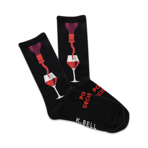 Pour Decisions Wine Glass Themed Socks for Women Our "Pour Decisions" socks feature a pattern of wine glasses and the words "Pour Decisions" in a fun and playful design. These socks are perfect for any wine lover and are sure to make a statement. Made with high-quality materials and construction, these socks are cozy and comfortable. Whether you're wearing them for a night out or just lounging at home, these socks are sure to add a touch of fun to your day. Grab a pair today to add a splash of red wine humor to your sock drawer!