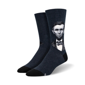 Who says socks can't be presidents? We do here at Novelty Socks Emporium! Our "President Lincoln" sock collection is here to prove that socks can indeed be leaders! Get ready to lead the fashion world with these socks that feature a pattern of our 16th president's face on dark blue socks. And remember, while power corrupts, socks complete!
