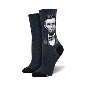 The socks you've been waiting for! The Abraham Lincoln socks let you show off your presidential style in a comfortable fit. These American-made socks put a new spin on history! These blue crew socks are emblazoned with the visage of Honest Abe himself, making them the perfect choice for the history buff in your life, or anyone who wants to channel the spirit of our 16th President.