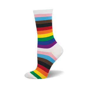 The vibrant colors of a rainbow have long symbolized hope and unity, and now they can cozy up your feet with our Progress Stripes socks. These eye-catching socks are more than just a fashion statement; they're a nod to inclusivity and forward movement. Slip them on and let each step be a reminder of the progress you champion.