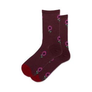 Why keep your feet covered with boring socks when you can spice things up with these fabulously floral Purple Flower Wool Crew Socks? Picture this: a bed of black adorned with red flowers that bloom with vibrant yellow centers, all set against a background of lush green stems and leaves. Not only will these socks add a pop of color to your day, but they're also soft, durable, and guaranteed to make your feet feel like they're walking on a bed of petals. Trust us, these socks are the perfect pick for anyone who wants to add a touch of fun and whimsy to their wardrobe.