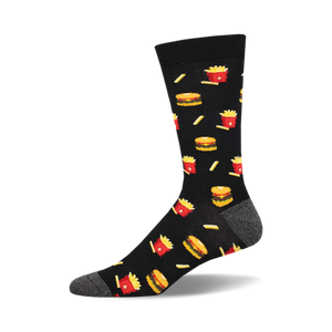 Unleash your inner foodie with our Quick Bite Bamboo socks! Adorned with mouth-watering cheeseburgers and crispy french fries, these black crew socks serve up undeniable style with a side of sass. Perfect for backyard BBQs, casual Fridays, or just lounging around, they'll keep your feet as happy as your taste buds at a brunch buffet. Looking for a conversation starter at your next social gathering? Slip into these socks and watch the compliments roll in faster than your favorite fast food order!