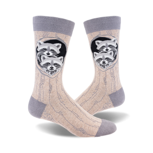 There's something inherently charming about raccoons, those mischievous little bandits of the forest, especially when they peek out from their cozy dens. Capture that whimsical spirit with these crew socks, where raccoons play hide-and-seek amidst a beautifully detailed tree bark pattern. Crafted for comfort, they're the perfect blend of nature and fun, making them an ideal choice for guys who enjoy a dash of whimsy whether they're conquering the office or relaxing at home.