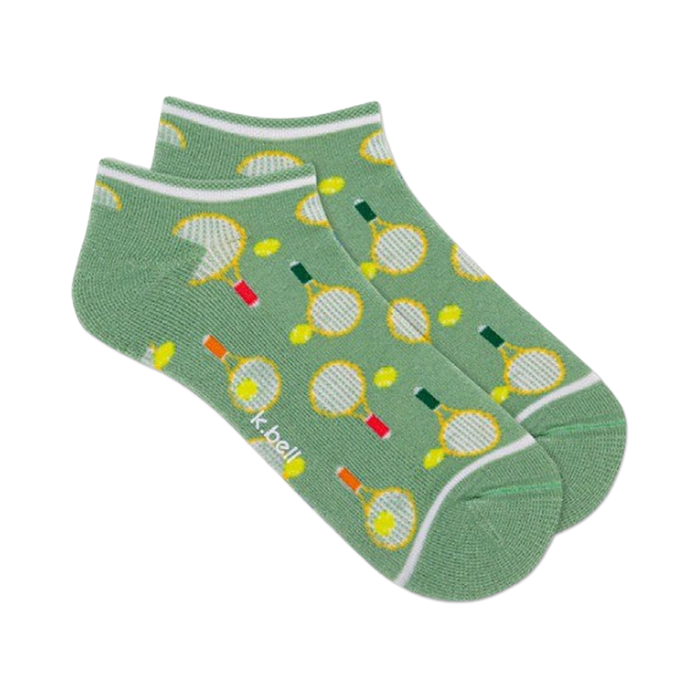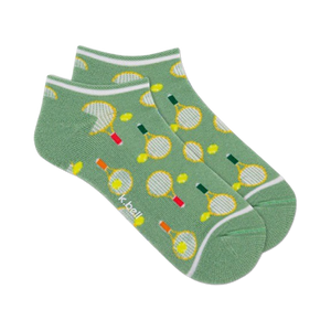 Racket Repeat: Ace Your Style Game! Tennis fans, get ready to up your sock game with Racket Repeat! These ankle-length wonders are a sporty serve, featuring a lively pattern of tennis balls and rackets. Get ready to volley for compliments whenever you step out in these eye-catching kicks! The vibrant green hue will keep you feeling fresh, while the durable fabric ensures you're always ready to hit the court in style.