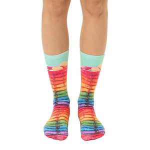 Who needs drab socks when you can wear the breakfast of champions? Rainbow Pancakes socks have a photorealistic pattern of rainbow pancakes with syrup on top, so you can start your day off right, no matter what time you wake up. They're so realistic, you'll be tempted to put butter and syrup on them, but don't, or else you'll end up with sticky feet! These crew socks are made for both men and women, so everyone can enjoy a stack of pancakes on their feet.