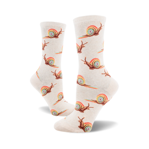 Add a pop of whimsy to your wardrobe with Rainbow Snail novelty socks! Swirling with cheerful snails and their vibrant rainbow shells, these socks are perfect for brightening any outfit. Whether you're lounging at home, stepping out for coffee, or organizing a shell-abration, these socks ensure your feet stay as colorful as your personality. So, why walk when you can parade in playful style? Grab a pair today and let your toes tell a tale of color and fun!