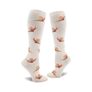 Add a pop of personality to your wardrobe with our Rainbow Snail knee-high socks! Sport these vibrant socks featuring playful snails with rainbow-shelled designs. Perfect for brightening up your daily attire or spicing up a costume, these socks bring fun and flair wherever you go. Hosting a party? Why not let your feet steal the spotlight with these colorful conversation starters? Go on, slide into a pair and watch the compliments (and smiles) roll in!