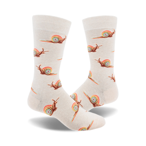 Add some whimsy to your wardrobe with our Rainbow Snail socks! These crew length socks aren't just white; they're a playground for snails sporting outrageously colorful rainbow shells. Perfect for brightening a mundane office day or adding a pop of fun at your next casual hangout. Who said snails have to be slow? Get these on your feet and start the conversation wherever you stride!