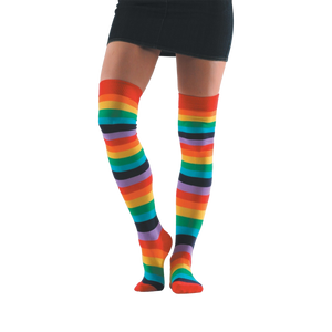 Flash your true colors! Show off your colorful side with our knee-high Rainbow socks. The vibrant stripes will wrap your feet in a rainbow of comfort, making every step more fun and joyful. You'll be the life of the party and the envy of all your friends.