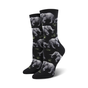 Take a jumbo-sized step into the wild and let your feet make a statement with our Raising A Herd socks! These exclusive crew socks offer a parade of gray elephants marching toward adventure on a black background, set amidst green patches of grass. Let your toes embark on a safari and discover the herd's boundless spirit. Don't be afraid to let your wild side take the spotlight with Raising A Herd socks!