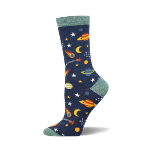 Elevate your sock drawer to cosmic proportions with our "Reach for the Stars Bamboo" socks! Adorned with a whimsical array of planets, moons, stars, comets, and shooting stars, these blue crew-length socks will add a stellar twist to any outfit. Perfect for stargazers and fashion-forward thinkers alike, they are a must-have for lounging at home or adding a pop of personality to your office attire. Why settle for ordinary when you can walk on the starry side of life?