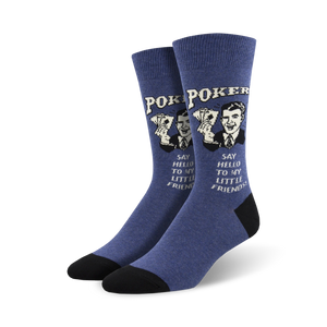 🃠Say hello to your new favorite socks! 🃠With "Read Em and Weep" poker-themed crew socks, you'll be the talk of the table, whether you're bluffing your way to victory or going all-in. Sporting a vibrant blue canvas adorned with a sly poker player holding his cards close to his chest, these socks will make even Lady Luck blush. 🧦 Shuffle up and deal yourself a fresh pair today!