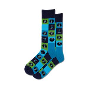 Discover the rhythm of style with Record Grid, the energetic novelty socks designed to make your feet dance to the beat of fashion. Imagine yourself grooving with your toes enveloped in these dark blue socks, adorned with a vibrant array of multicolored vinyl records. Each step you take will unleash the melody of colors, leaving behind a symphony of tunes. The eye-catching green cuff and lively blue toe and heel add a touch of offbeat charm to your ensemble, transforming you into a walking music festival. Step into these socks and feel the rhythm resonate with every step!