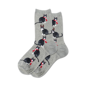 From the North Pole, Straight to Your Soles! Reindeer Cat socks feature a delightful squad of black cats rocking Rudolph-style antlers against a classic gray backdrop. These festive felines make perfect stocking stuffers that fit even Santa's boots. They're sure to make you say, "paws for effect!" Grab a pair and let these socks jingle all the way.