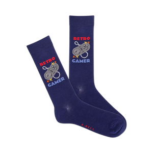 Retro gamers, prepare to level up your sock game! These rad crew socks feature the words 'Retro Gamer' in bold font, accompanied by an iconic 8-bit style video game controller. Blast back to the golden age of gaming with these colorful and comfortable socks. Perfect for conquering high scores, marathoning your favorite retro titles, or just showing off your love for all things vintage.