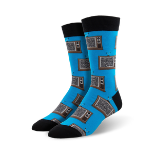 Who needs cable when you can wear TV on your feet? Our Retro TV socks feature a pattern of classic tube televisions with fuzzy screens, ready to transport you back to a simpler time. Perfect for anyone who grew up in the golden age of television or simply loves a good blast from the past.