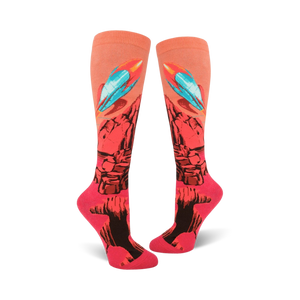 Prepare for takeoff and blast off into style with our Rocket From the Red Planet knee high socks for women. Designed to ignite your imagination and take you on an interstellar journey, these socks will make you feel like you're channeling your inner astronaut. With their bright pink color and intricate pattern of rockets soaring through space, these socks are sure to turn heads wherever you go. Embrace the cosmos and wear your love for the final frontier in the most fashionable way possible!