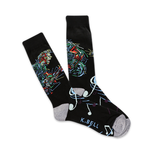 Slip on these Rockin' Out socks and let your feet take center stage! With a vibrant pattern of a guitar-strumming rockstar and catchy musical notes, these crew socks are a melody for your feet. Plus, you'll be walking on sunshine knowing 5% of profits from these socks are donated to music education programs. Strike a chord with your style and make a difference - rock on!