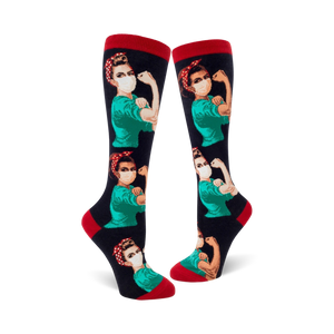 Rosie the Nurse socks pay homage to the iconic symbol of women's empowerment. From the factory floor to the front lines, these knee-high socks are a salute to all the Rosie's out there rocking red bandanas, blue polka dots, and surgical masks. Let Rosie's fierce determination inspire you every time you pull them on!