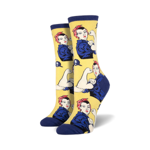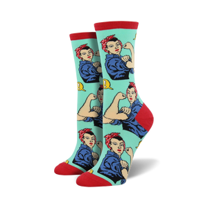 Anything men can do, women can do better - or at the very least equally. For the lady who sings her feminist song loud and proud, we offer these fun socks - with the mascot of the semi-liberated woman flexing herself from your toes to halfway up your leg. If you ever need a little motivation, just look down. You can do it! Get these ultra cool Rosie the Riveter socks and feel like the incredible woman you are!