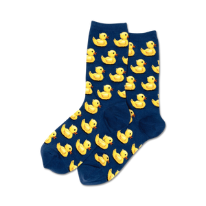 Rubber Ducks: Crew socks for women featuring an all-over pattern of cheerful yellow ducks. Perfect for adding a playful touch to any outfit, these socks are sure to put a smile on your face!