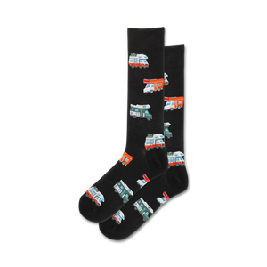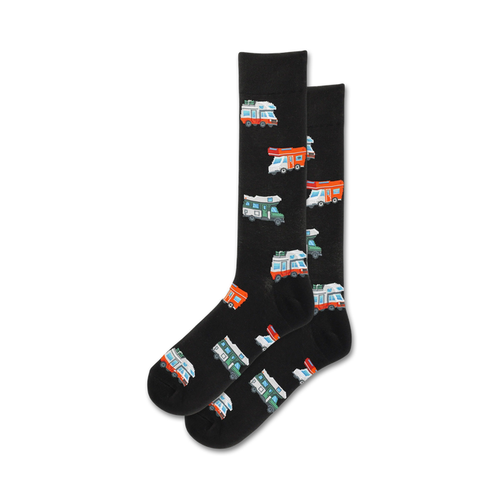Blast off on a groovy journey through time with our RV socks! These crew length socks for men feature a rad allover pattern of vintage recreational vehicles, perfect for any retro enthusiast. Get ready to turn heads and spark conversations wherever you go, because these socks are sure to become a topic of discussion. Fun Fact: Did you know that the first RVs were horse-drawn wagons? Talk about a road trip!