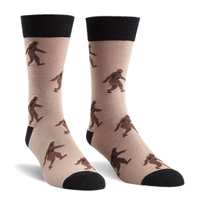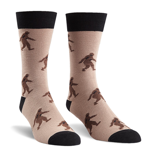 Sasquatch Crew Socks: Get Bigfoot for your feet! This awesome pair of socks features a pattern of skiing Sasquatches with festive winter attire. Perfect for the winter sports lover who wishes they could get away and live a secluded life in the woods, these socks are sure to make you the abominable snowman of style!