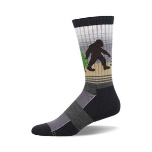 Add a touch of mystery to your toes with these merino wool socks, clad in an elusive Bigfoot silhouette. Why settle for ordinary when you can have legendary? These black and white socks arent just soft and snug; they're practically an urban legend in footwear form. Perfect for those who believe the wild is just a step away, theyre a cozy enigma wrapped around your feet. No myth here, just incredibly comfortable socks with a side of intrigue.
