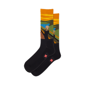 When it comes to art that echoes the intensity of human emotion, Munch's "The Scream" stands unrivaled. These socks capture that iconic expression while ensuring your feet stay cozy and supported all day long. With cushioned soles and arch support, comfort is a given. Plus, the durable polyester yarn construction might just make you want to scream with delight.