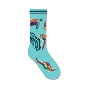 Dive into a sea of serenity with these ocean-inspired socks. Let the vibrant sea turtles take you on an aquatic adventure. From the teal waves to their multi-colored shells, these socks are an explosion of oceanic hues. Whether you're strolling on the beach or navigating the concrete jungle, these socks will keep your feet paddling in style.