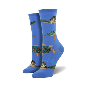 Looking to add some underwater majesty to your sock drawer? Look no further. These crew socks come complete with a family of sea turtles - or maybe friends, who knows - cruising beautiful jade waters and blowing bubbles without a care in the world. If only we could all be so lucky.