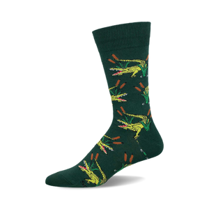 Ever wondered what it's like to have a dash of Jurassic charm wrapped around your ankles? These gator-themed socks bring a splash of prehistoric flair to your wardrobe. With yellow alligators showing off their toothy grins against a backdrop of green reeds, this design captures the essence of an adrenaline-filled swamp adventure without the risk of a close encounter. Embrace the enigma of nature's modern-day dinosaurs every time you slip on these vibrant socks.