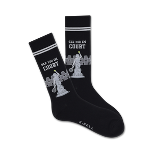 Step up your sock game and serve some serious style in our exclusive "See You In Court" socks. Featuring a legendary tennis player portrayed as a Greek statue, these socks will have you acing your fashion game and dropping jaws wherever you go. The iconic "See You In Court" slogan adds a touch of humor, making these socks the perfect choice for any lawyer looking to add some fun to their professional attire. Elevate your sock collection today and let your feet take center court!