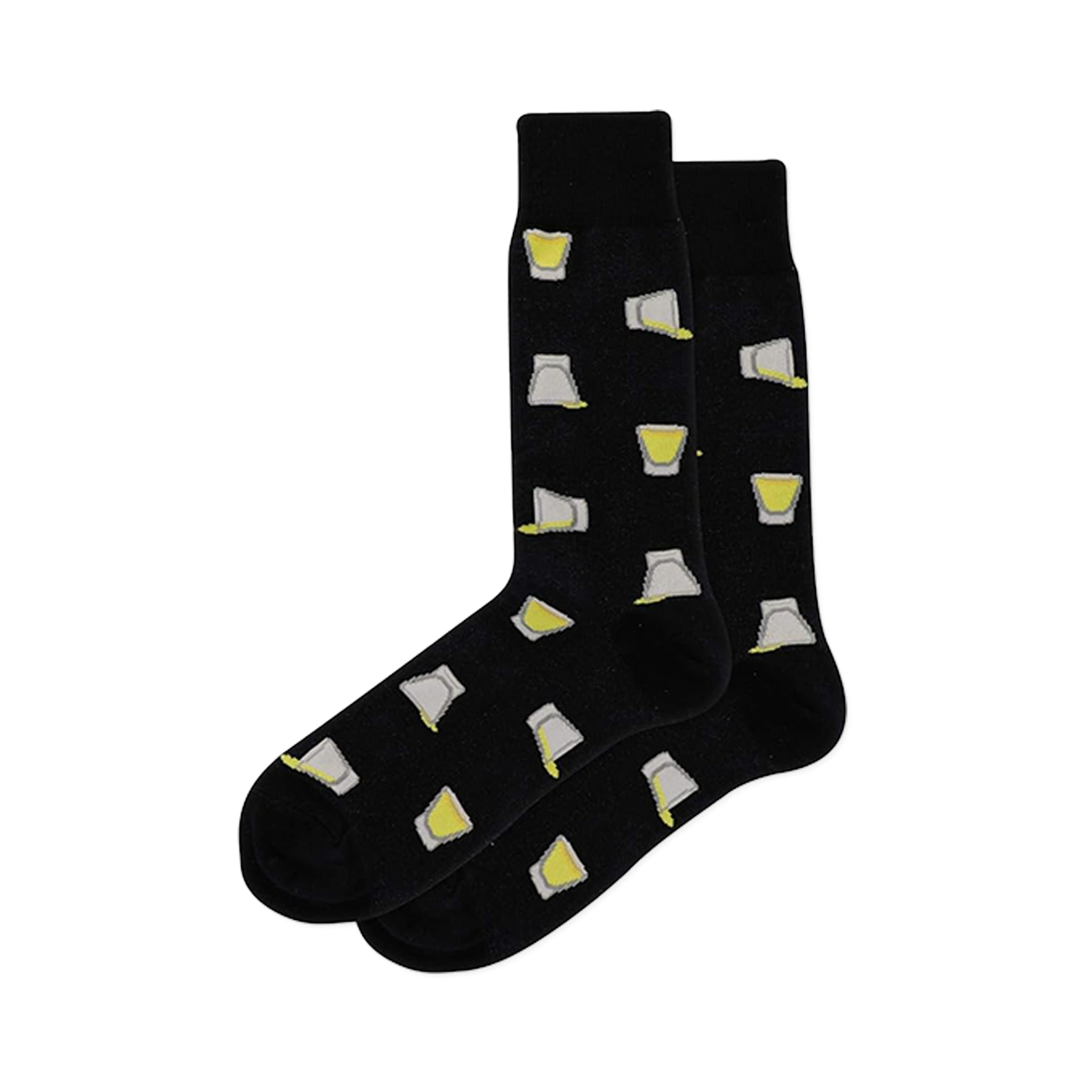 Men’s crew socks with a pattern of tiny shot glasses bring a bar-cart sense of humor to an everyday essential. The repeated little glass shapes create a playful allover design that feels a little cheeky, a little polished, and easy to wear with denim, sneakers, or boots when you want something unexpected peeking out from the hem.
